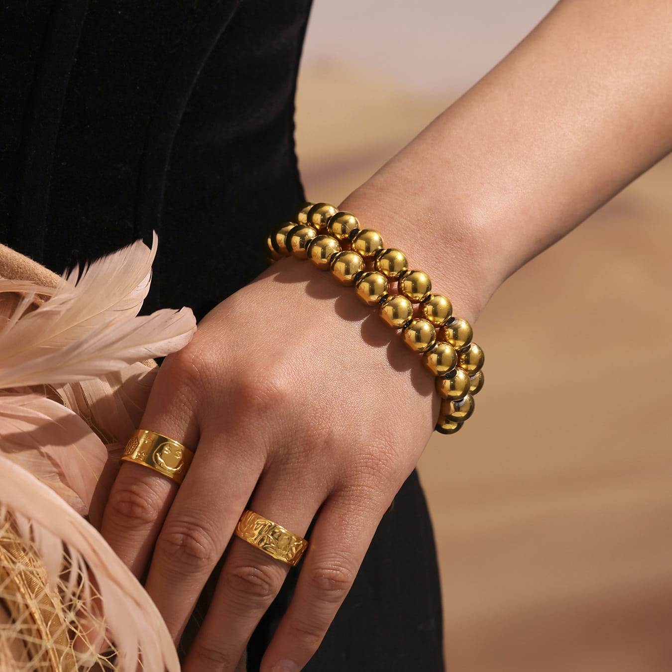 Crafted from waterproof, tarnish-resistant stainless steel, it's safe for sensitive skin and made to last through everyday wear. Whether you’re heading to brunch or layering up for a night out, this gold bead bracelet pairs effortlessly with everything.