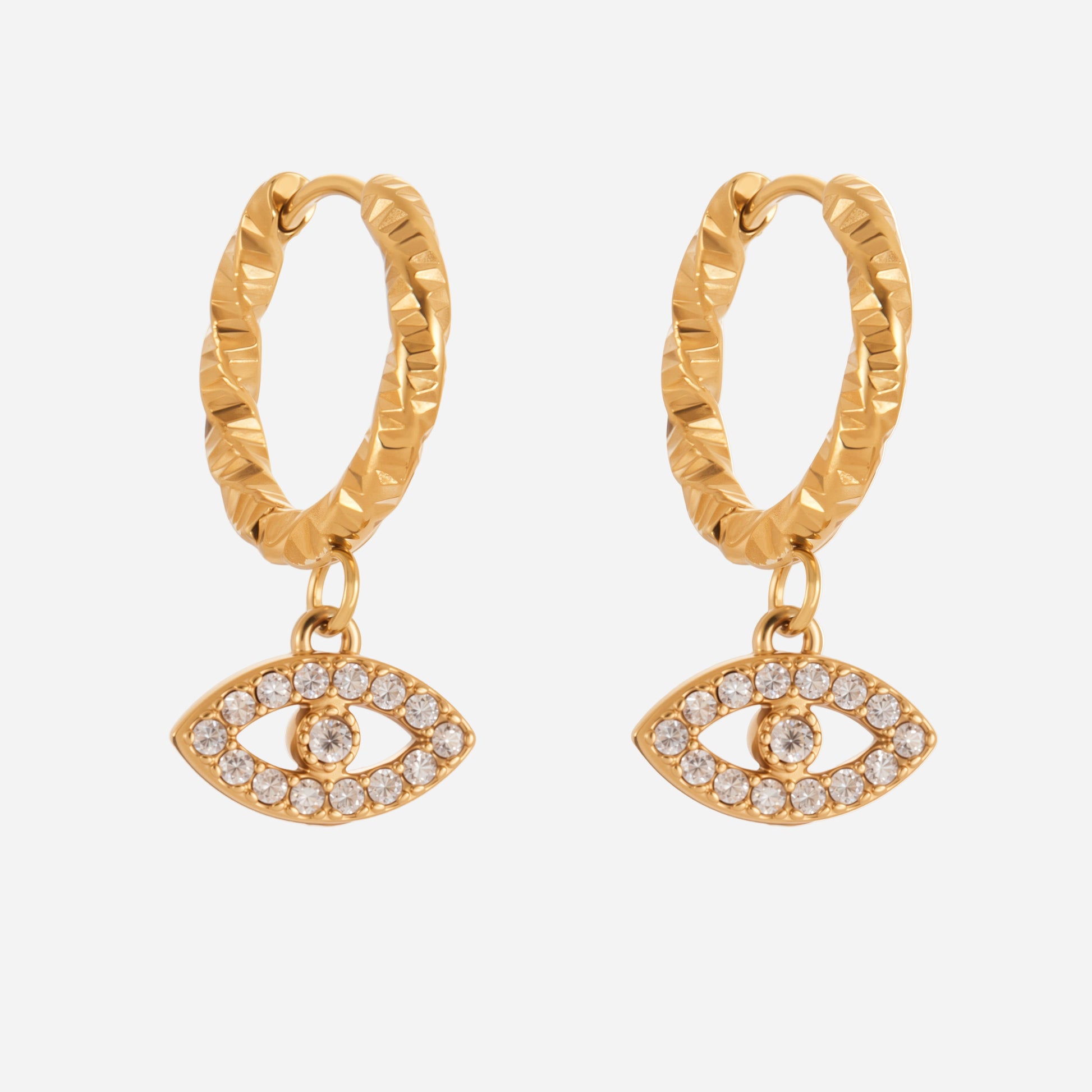 18k Gold Devil's Eye Full Zircon Earrings Stainless Steel