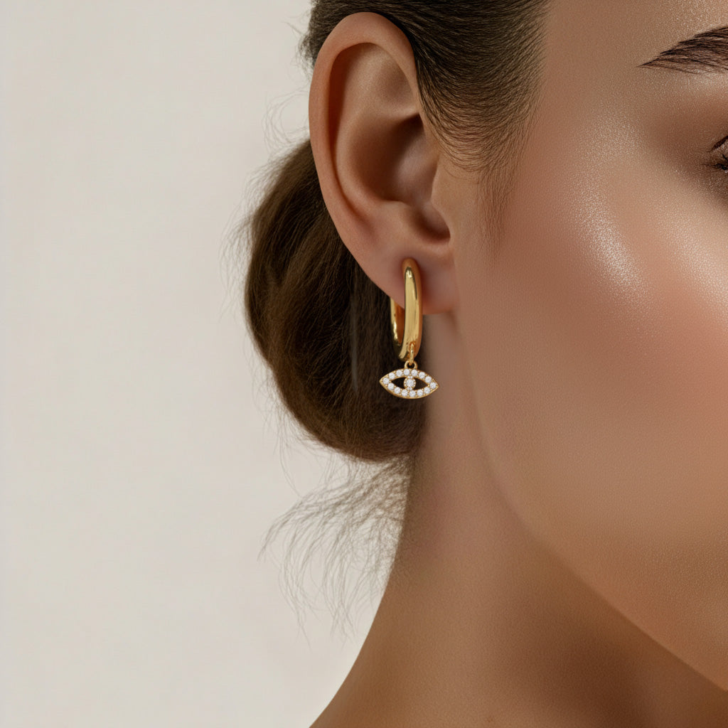 Introducing our 18k Gold Devil's Eye Full Zircon Earrings Stainless Steel- the perfect waterproof & tarnish-free summer necklace that will add a pop of color to any outfit.