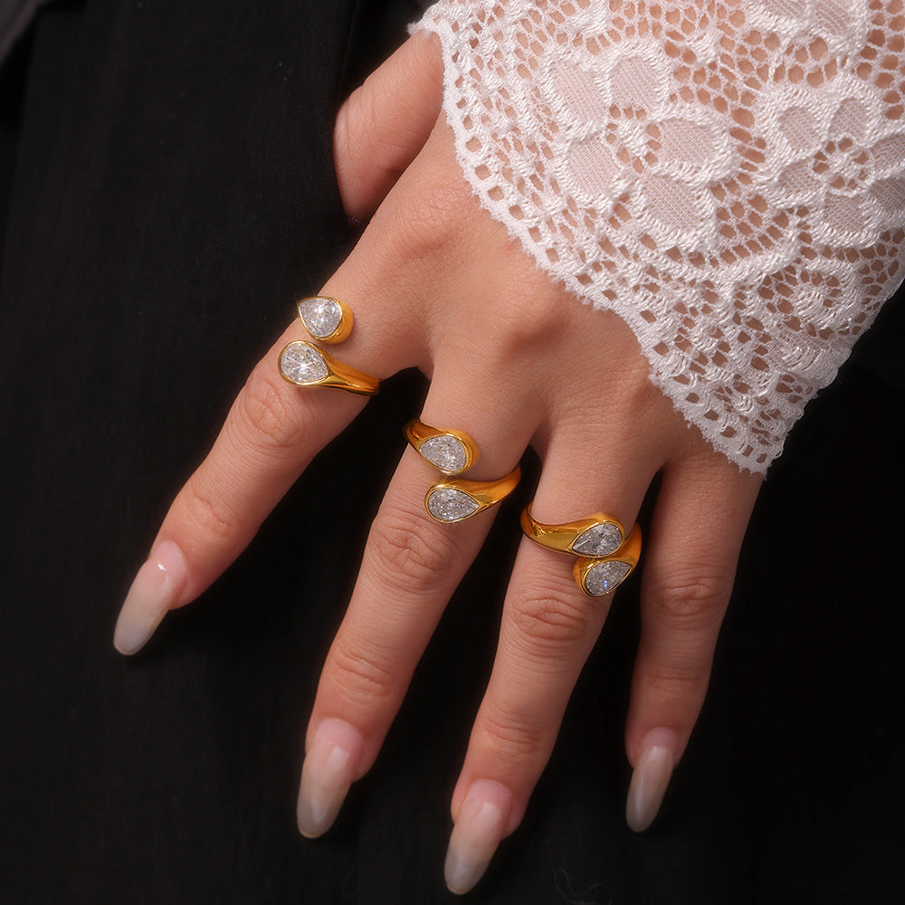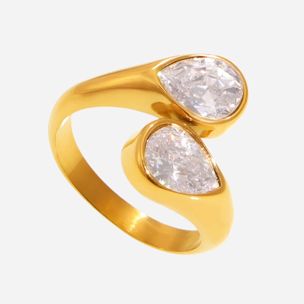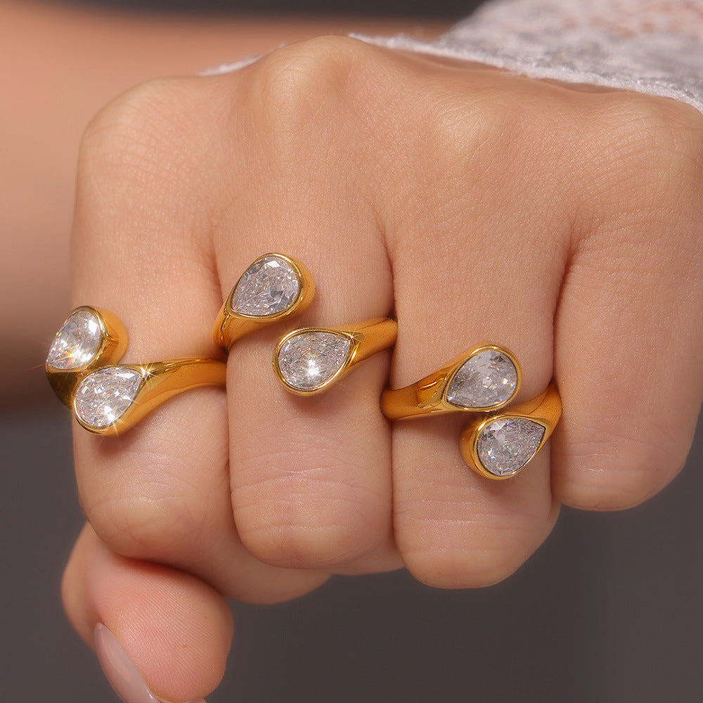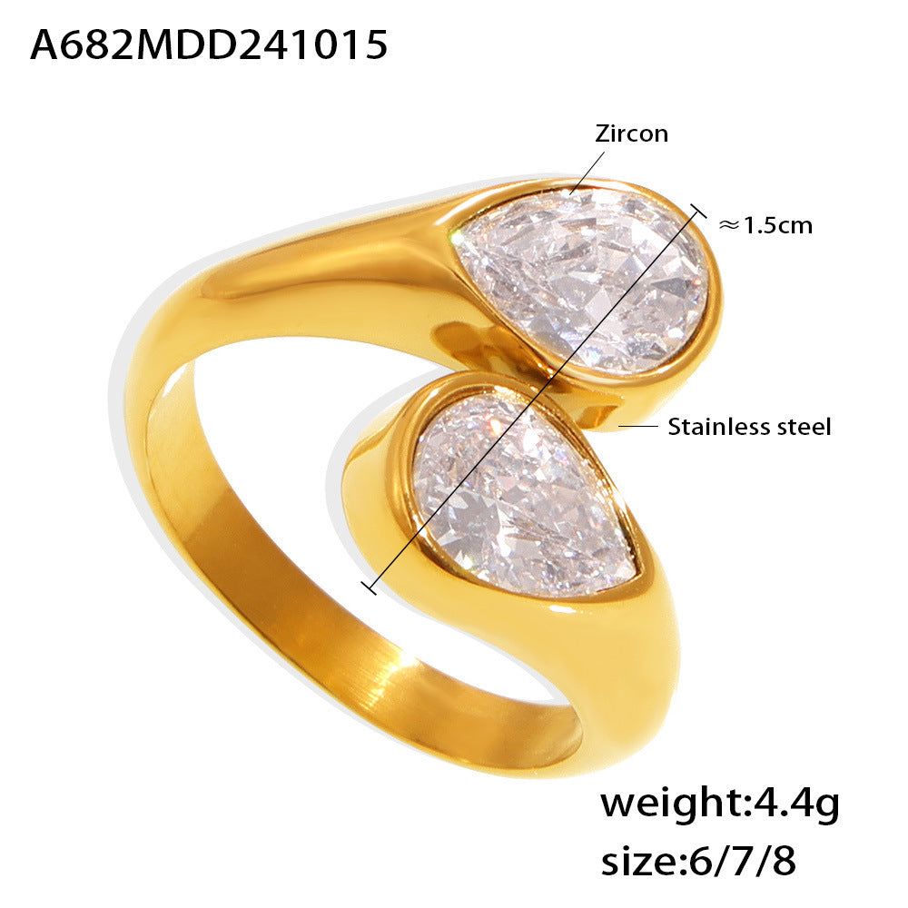 3A Zircon Double Drop Ring – Adjustable Stainless Steel
