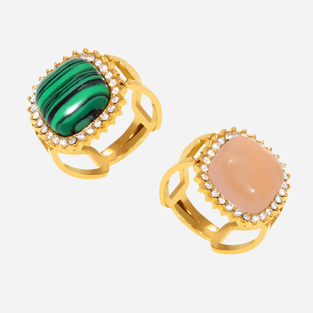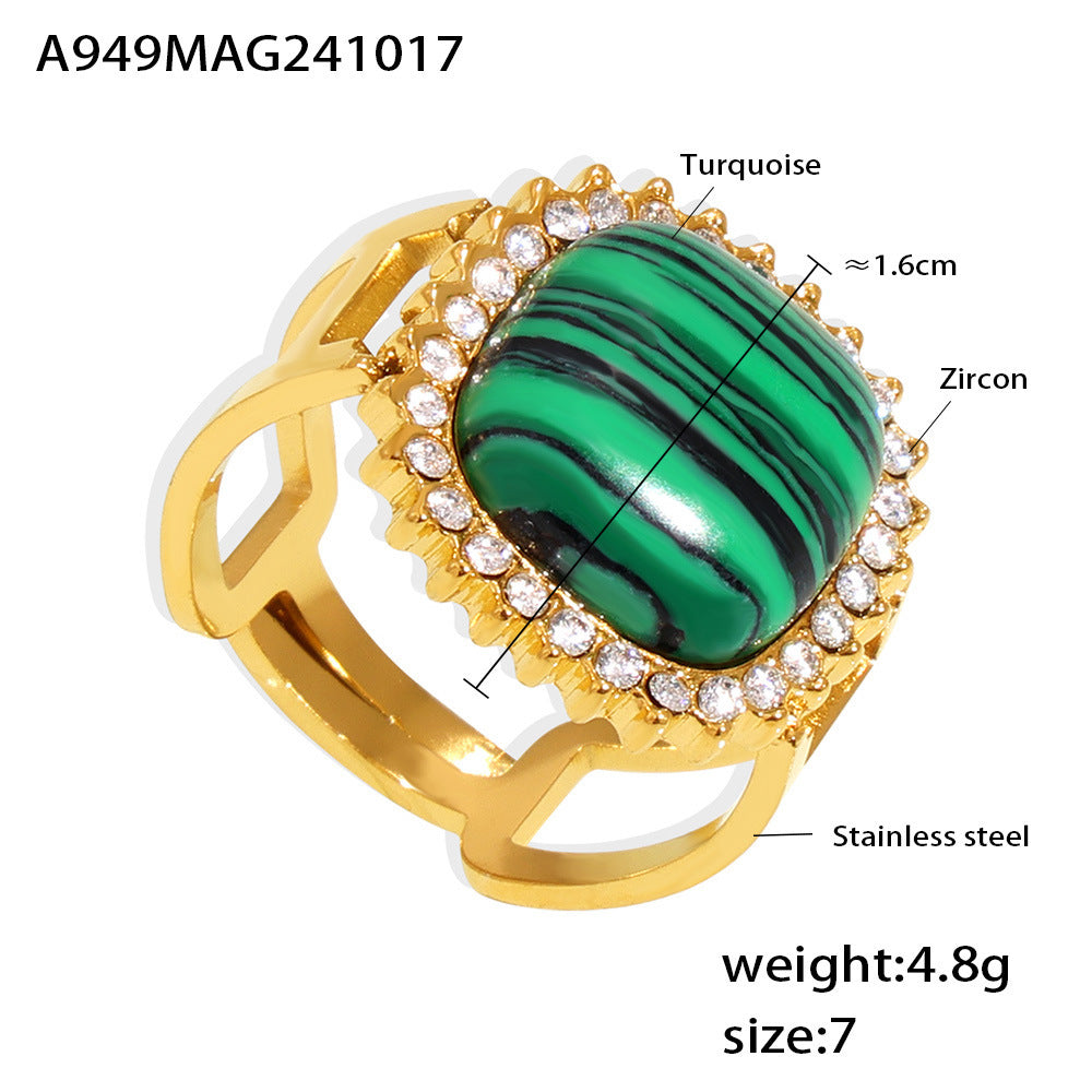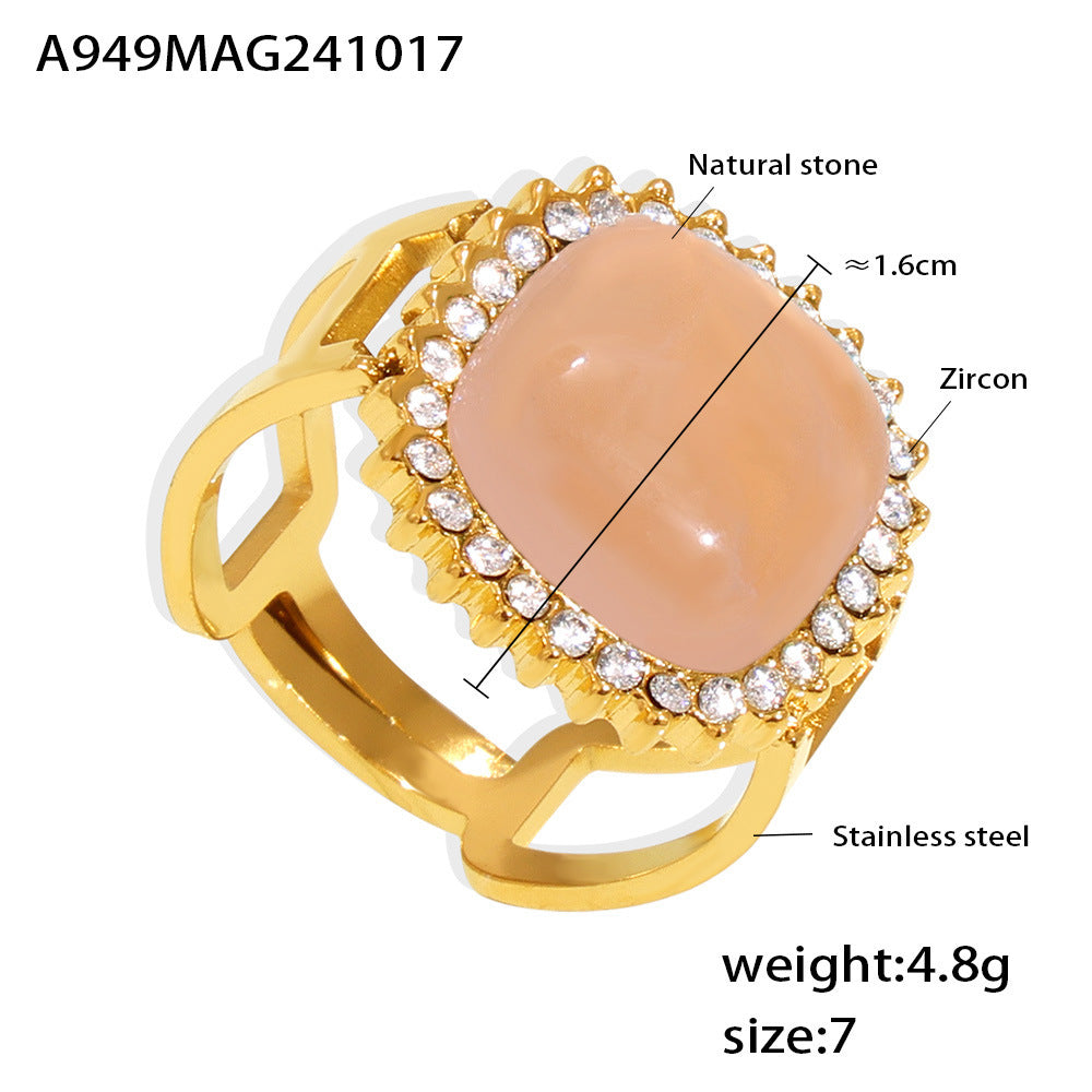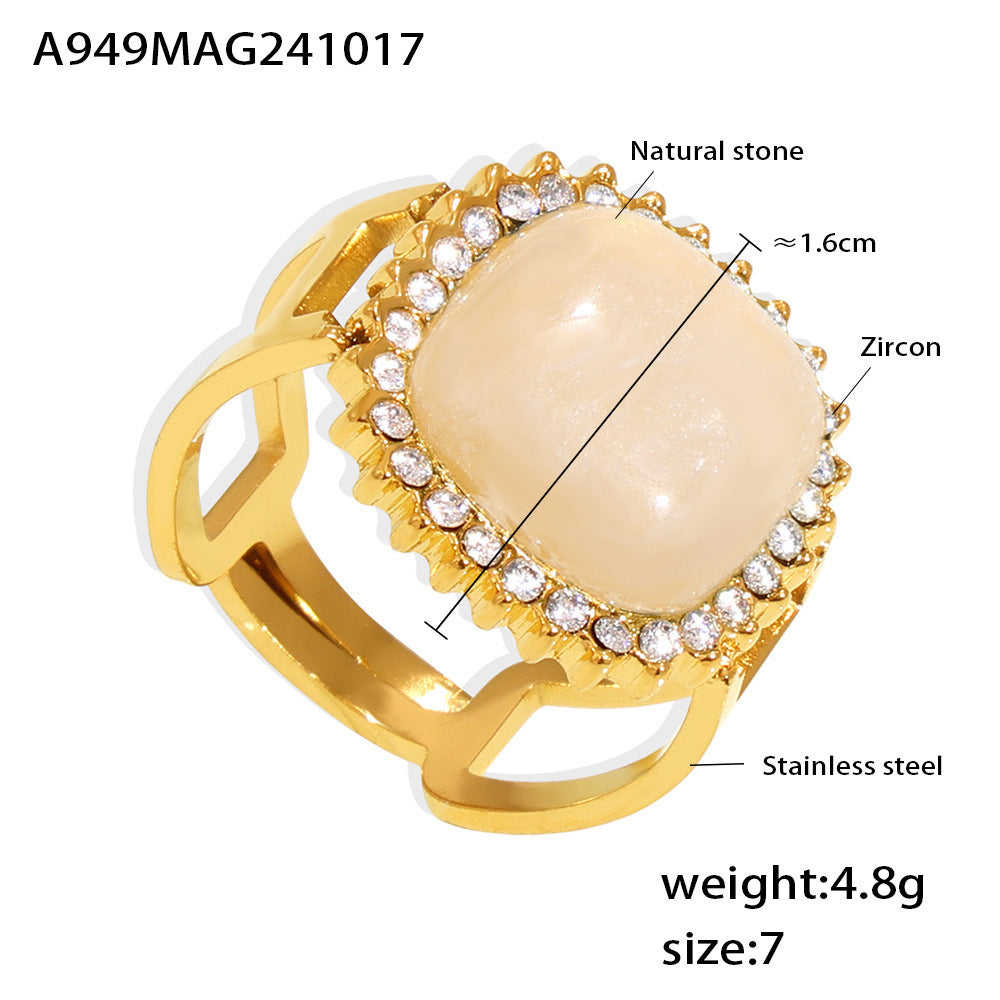 3A Zirconia Inlaid Natural Stone Open Ring Stainless Steel