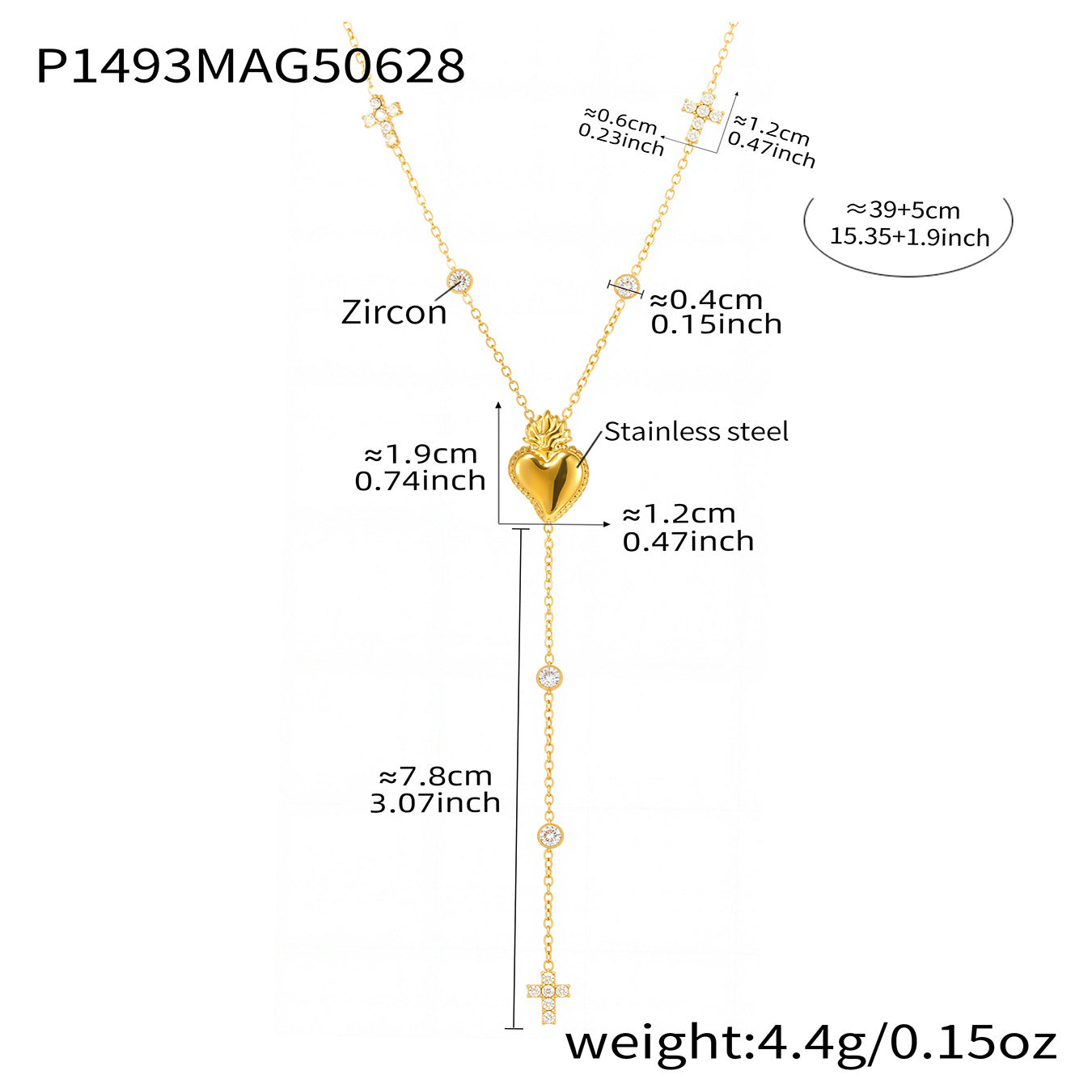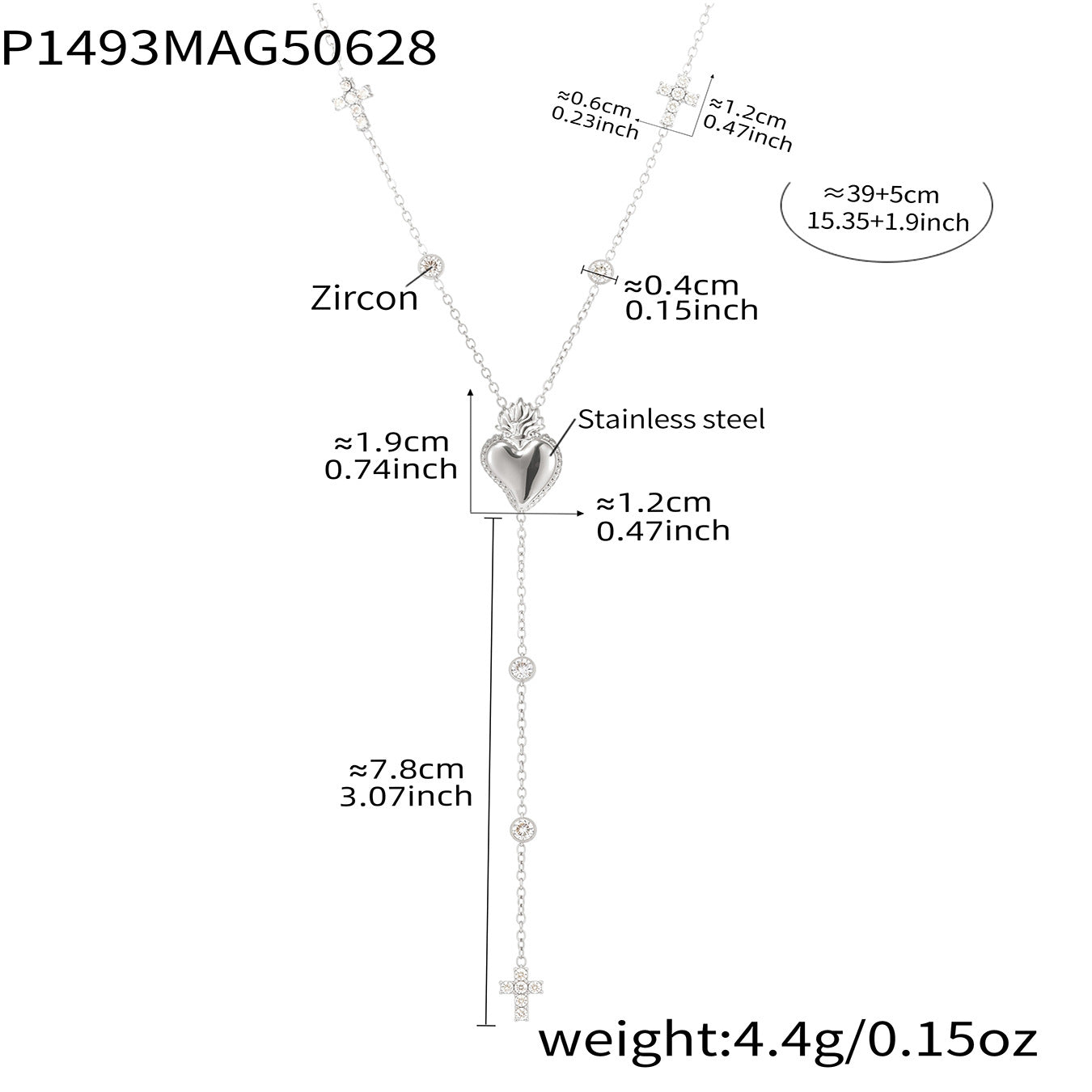 5A Zircon Cross Multi-layer Tassel Clavicle Necklace Stainless Steel