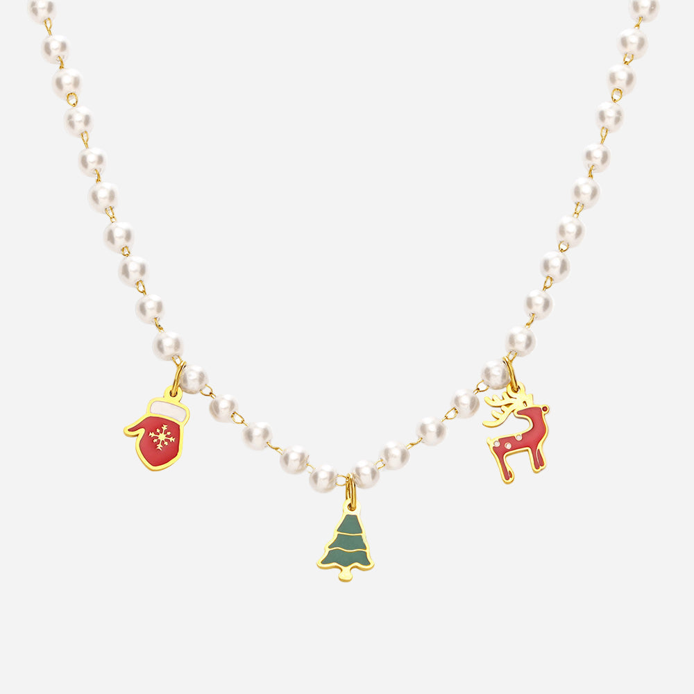 Introducing our Christmas Cute Cartoon Weight Glaze Pendant Necklace Stainless Steel - the perfect waterproof & tarnish-free summer necklace that will add a pop of color to any outfit.