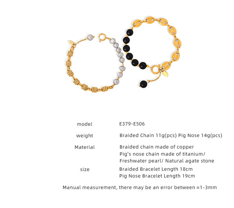 Classical Freshwater Pearl Handmade Beaded Natural Stone Black Agate Bracelet