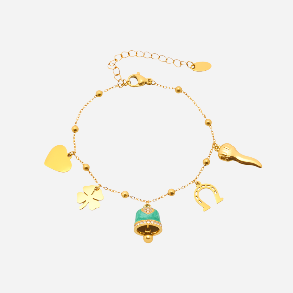 Colored Glaze Bell Heart Charm Bracelet Stainless Steel