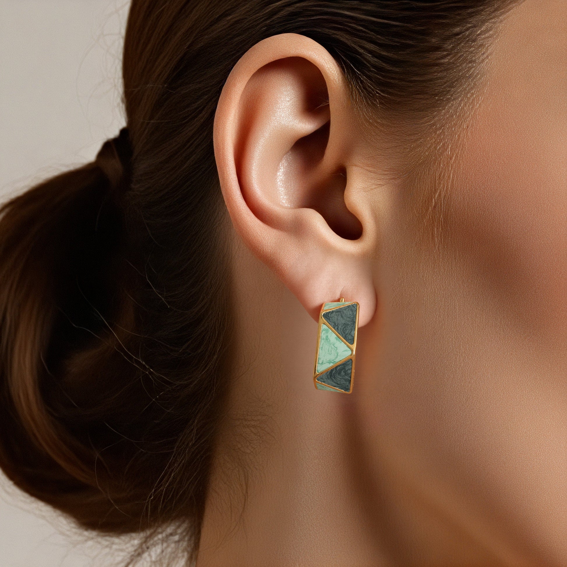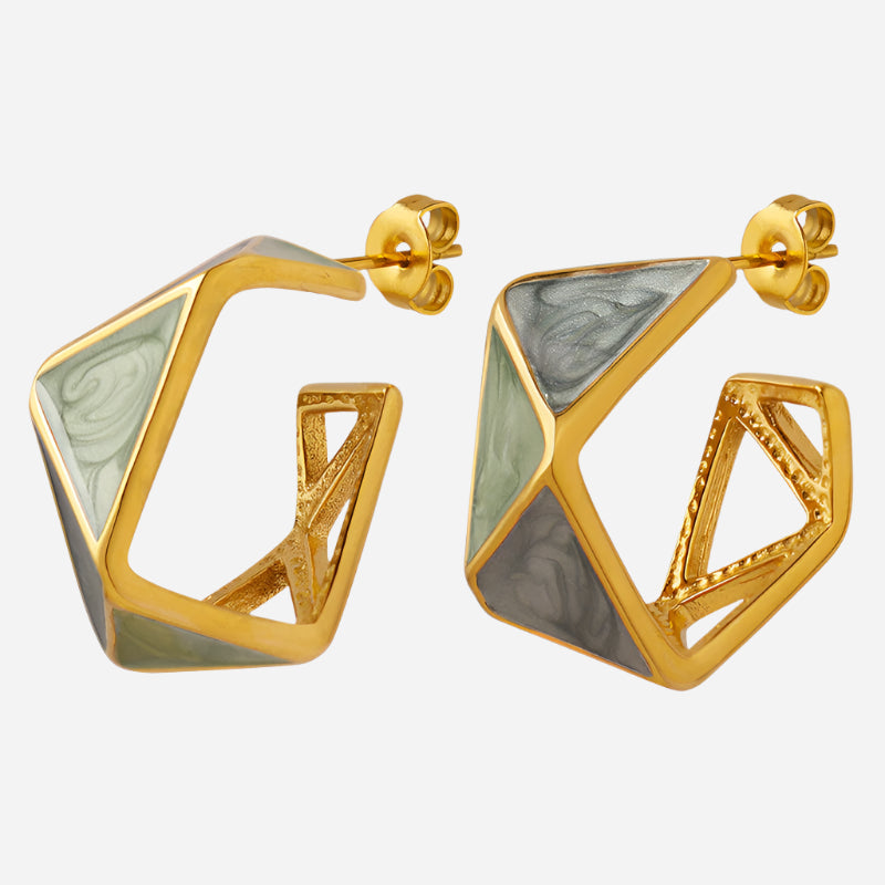 Deconstructing geometric aesthetics with colors - this pair of enamel oil-drip earrings is filled with hand-made high-temperature glaze, and each stroke is a unique artistic expression. Using traditional high-temperature enamel firing technology, the glaze is full and not easy to fall off, and the hardness and gloss are comparable to jewelry-grade craftsmanship