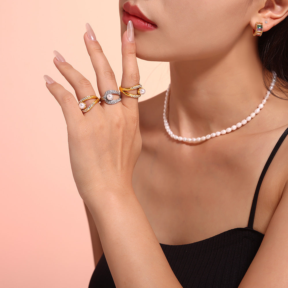 Introducing our Imitation Pearl Stainless Steel Rings With Zircon - the perfect waterproof & tarnish-free summer necklace that will add a pop of color to any outfit.
