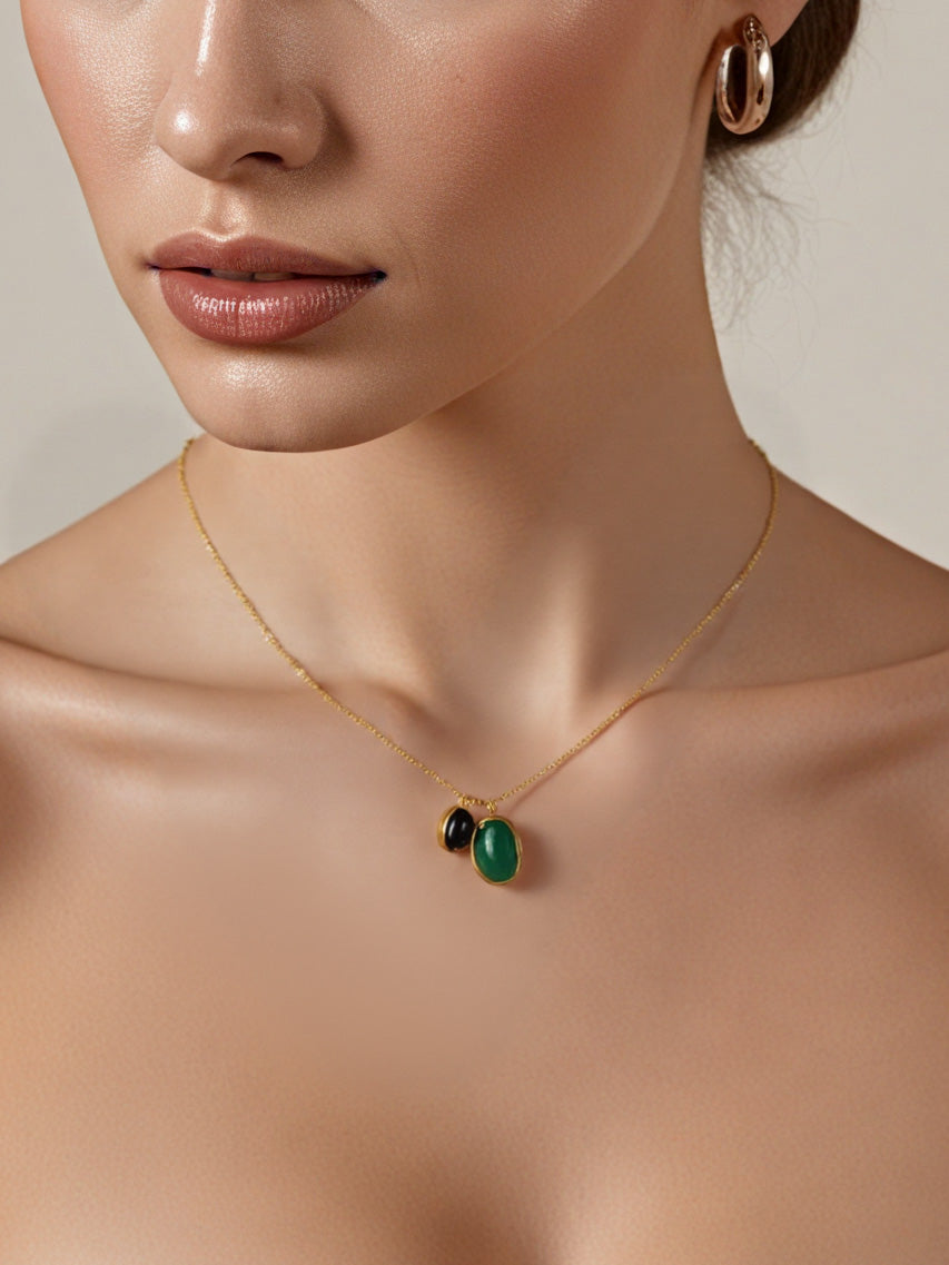 Irregular Stone Double Pendant Necklace | Stainless Steel Charm