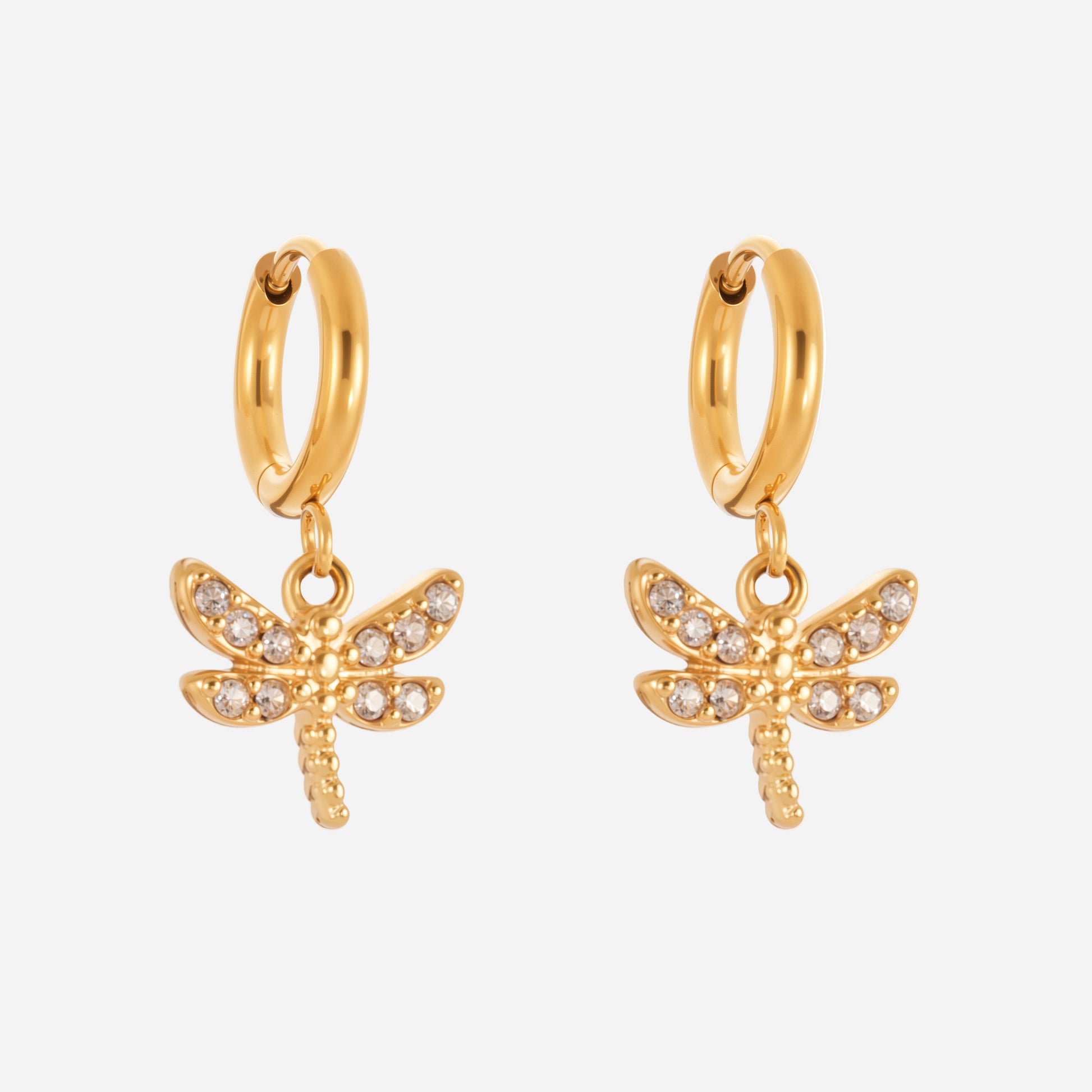 Micro-inlaid Zircon Dragonfly Pendant Earrings
