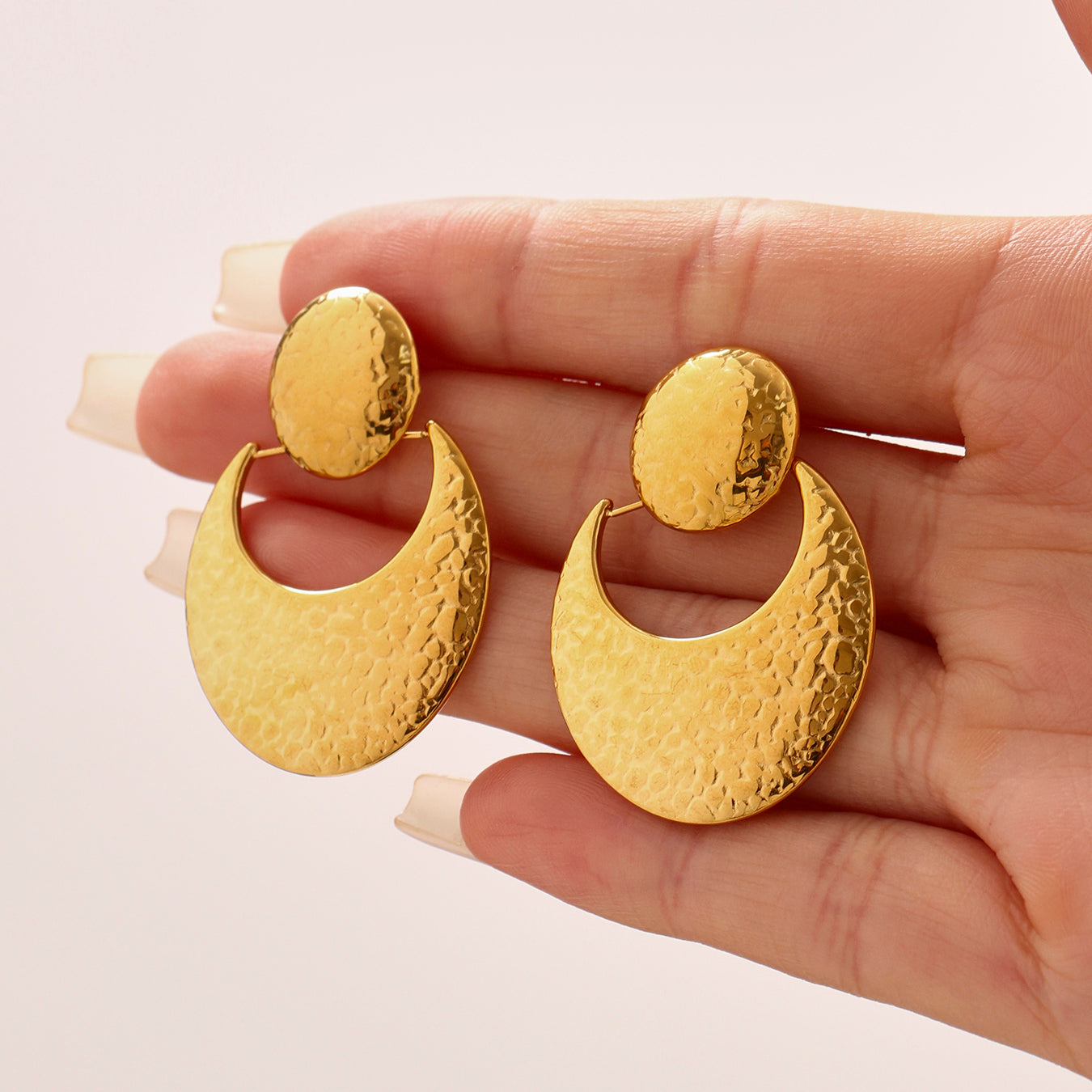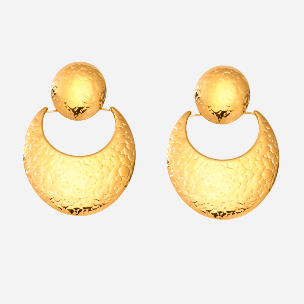 Introducing our Moon Shaped Hammered Stainless Steel Earrings - the perfect waterproof & tarnish-free earrings that will add pop of colors to any outfit.