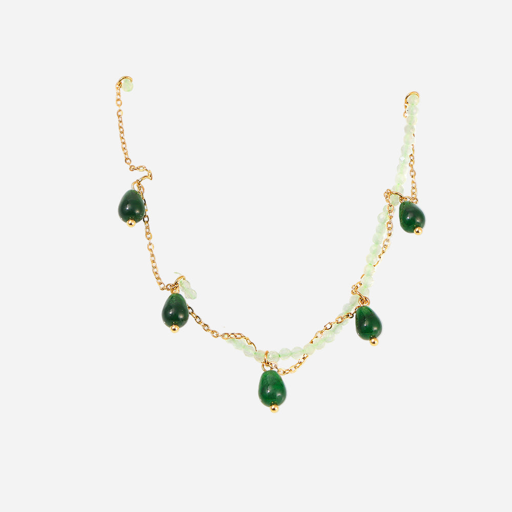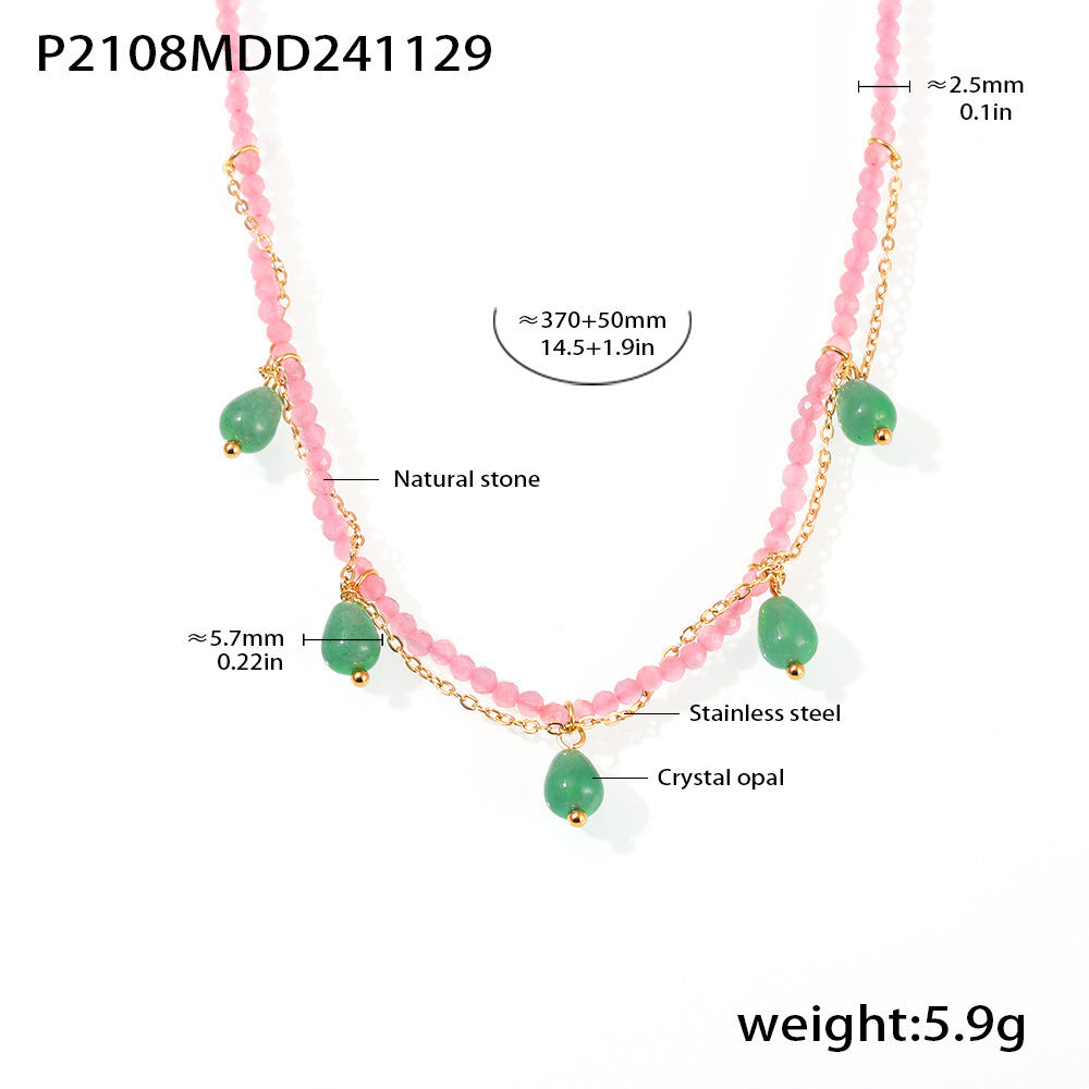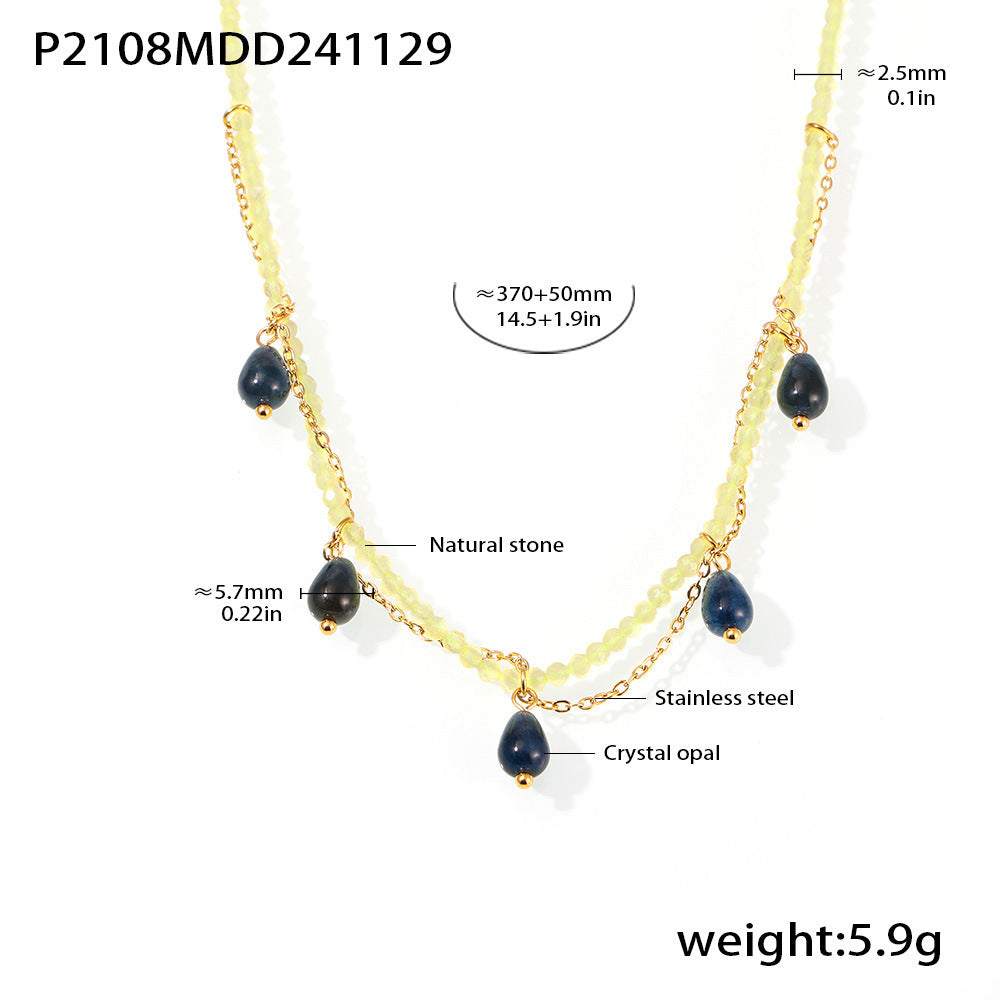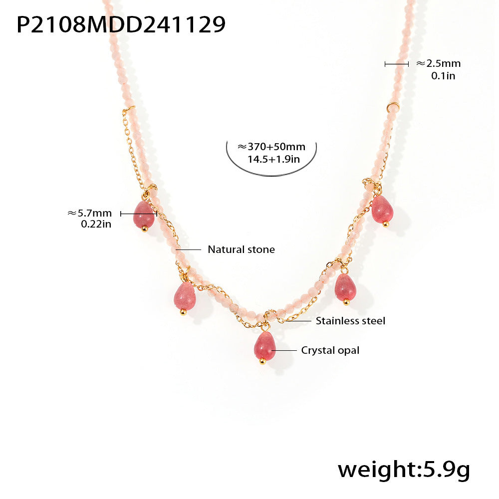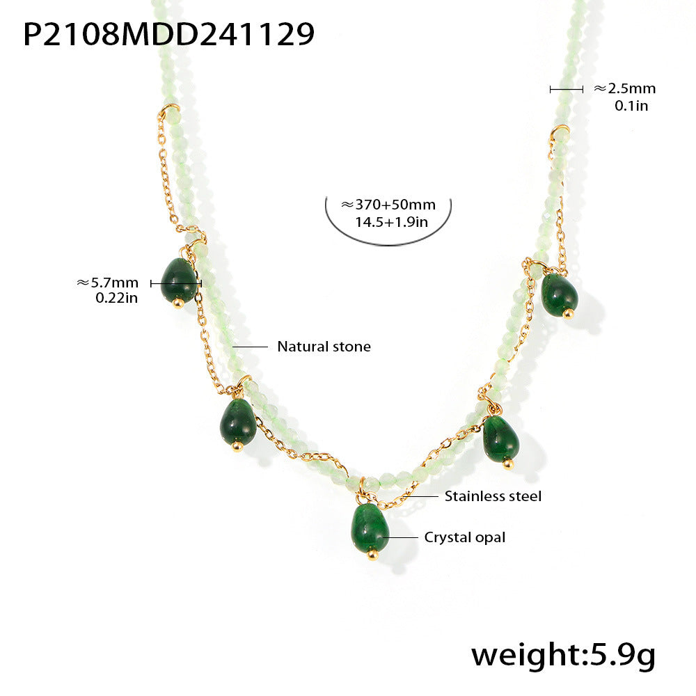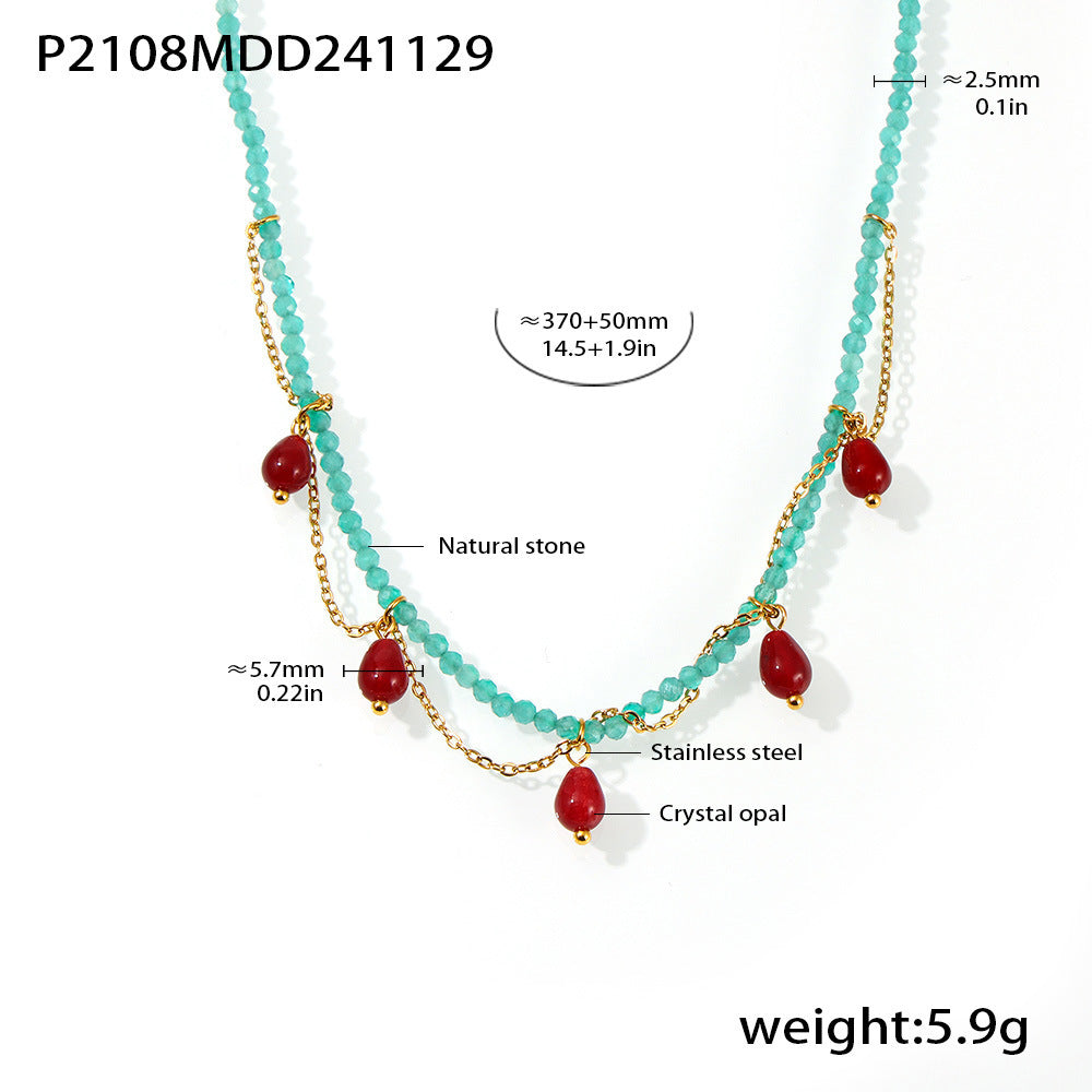 Introducing our Natural Stone Hand-Beaded Teardrop Cat's Eye Necklace- the perfect waterproof & tarnish-free summer necklace that will add a pop of color to any outfit.