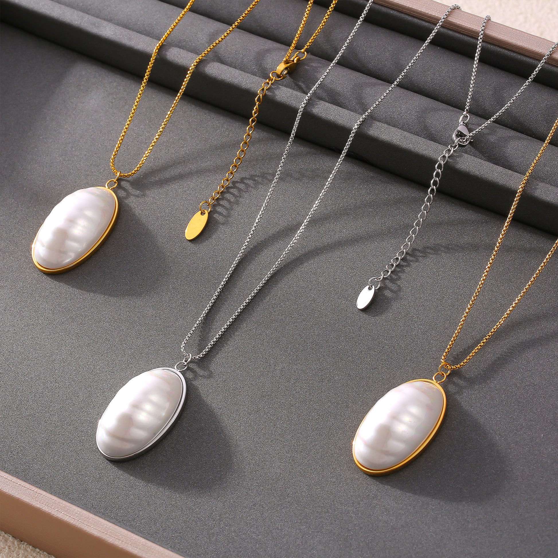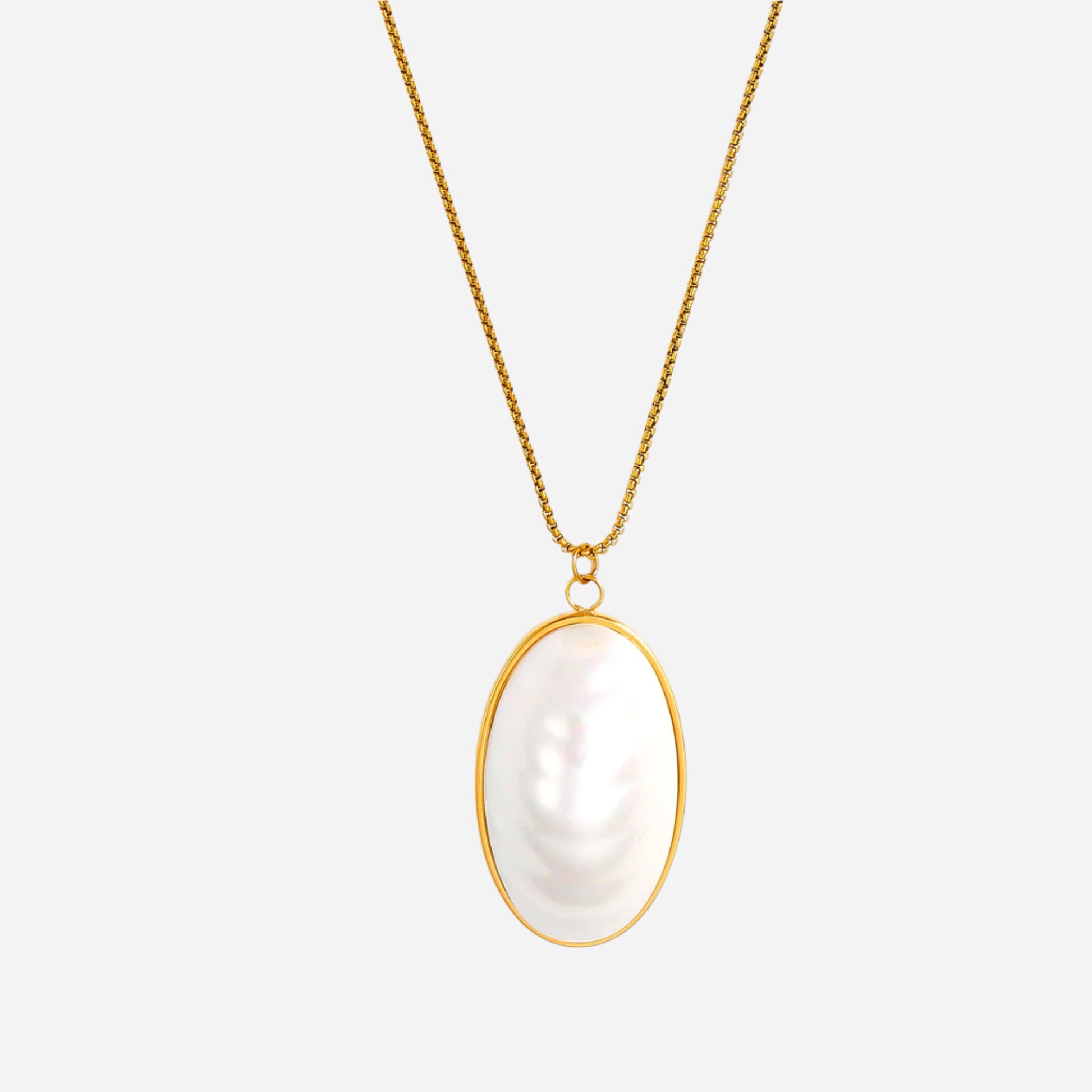 Introducing our Oval Shell Pendant Necklace - the perfect waterproof & tarnish-free summer necklace that will add a pop of color to any outfit.