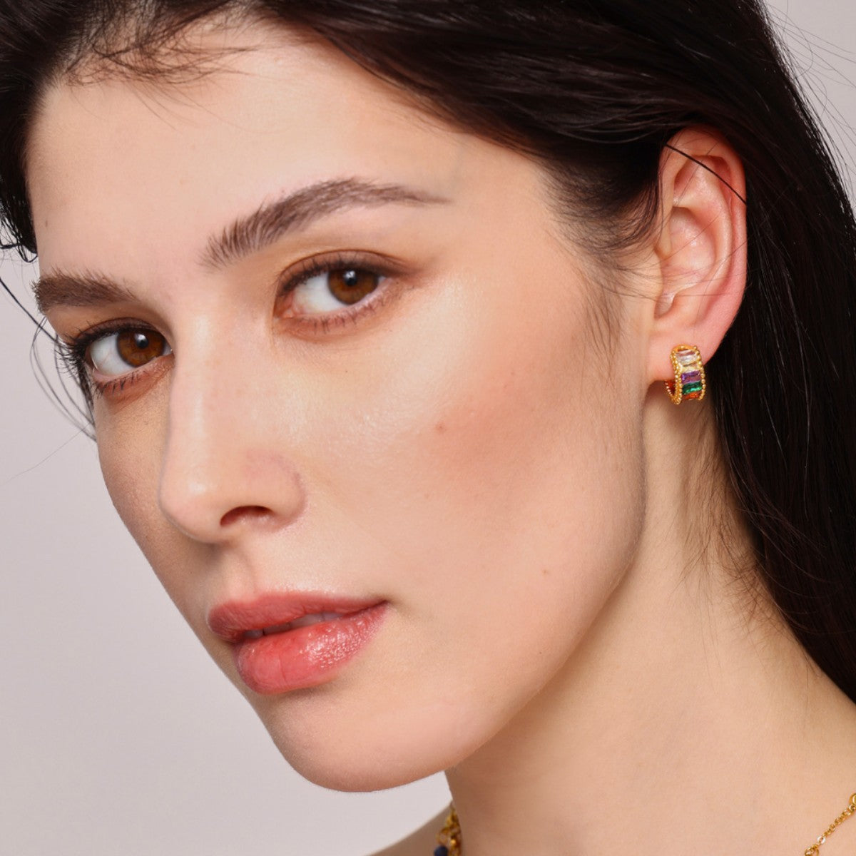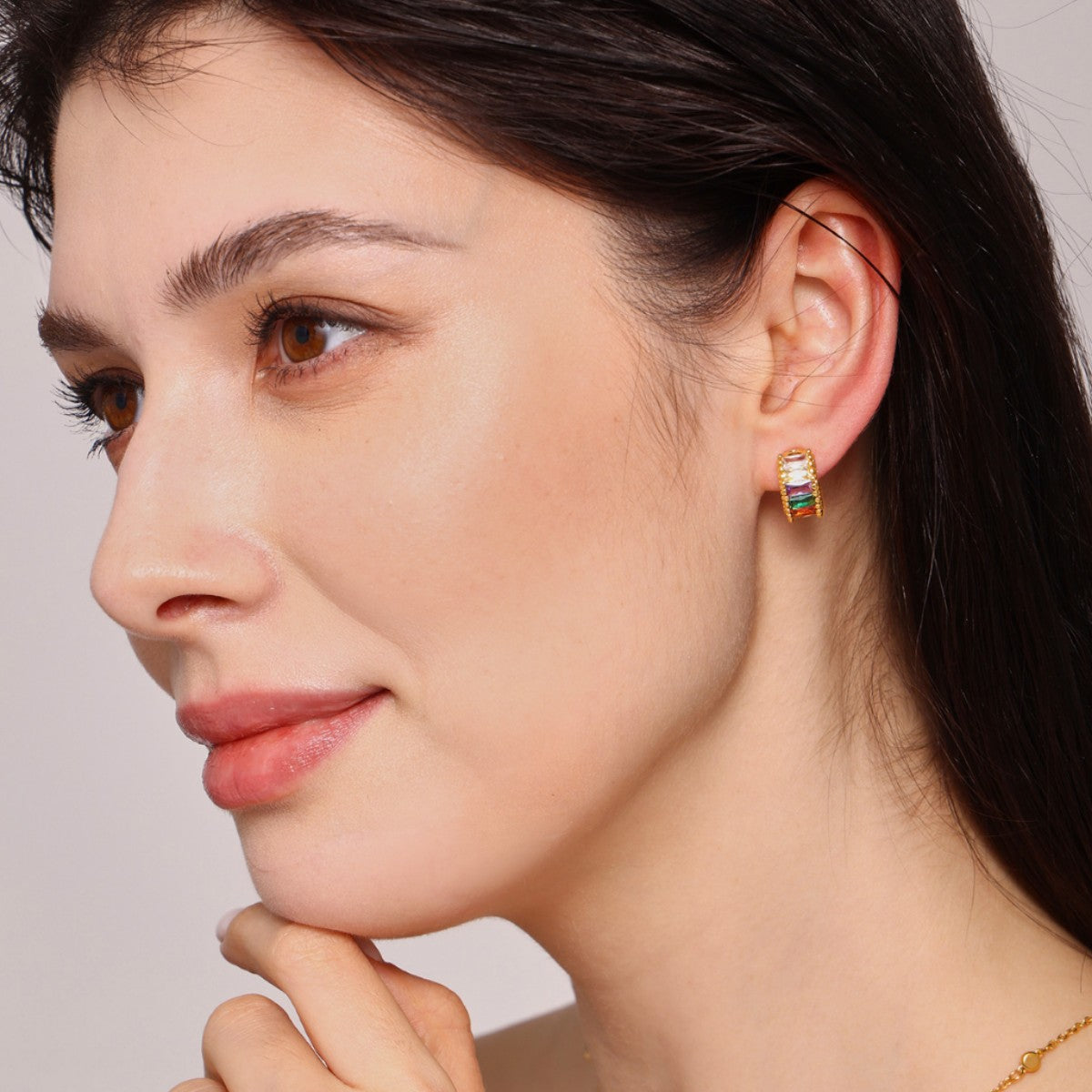 Introducing our Rainbow Glass Stone Clip Earrings for Non-Piercings - the perfect waterproof & tarnish-free summer necklaces that will add a pop of color to any outfit.