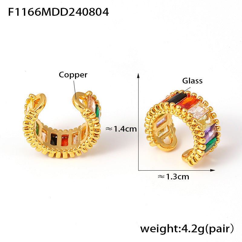 Rainbow Glass Stone Clip Earrings for Non-Piercings