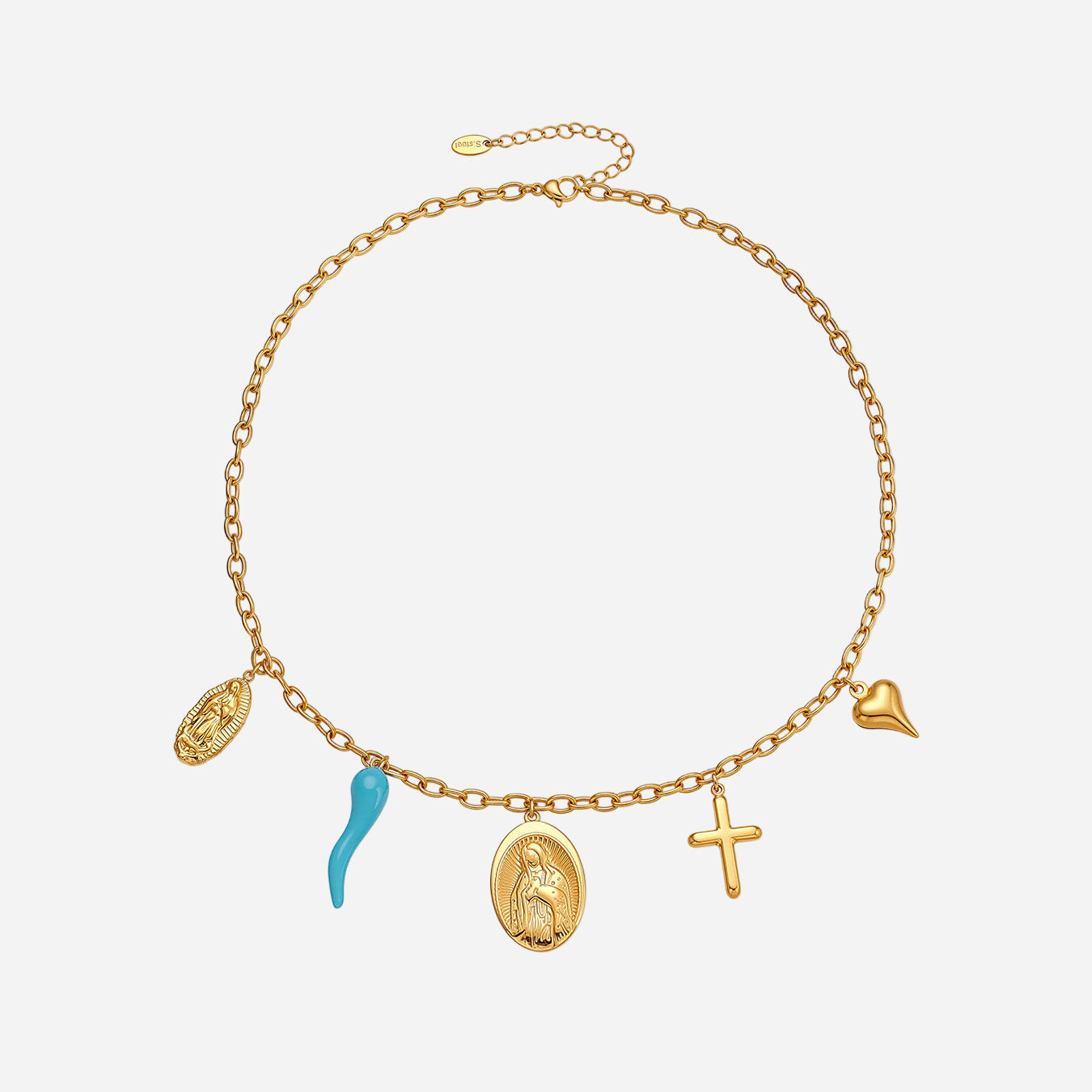 Introducing our Round God Cross Love DIY Multi-Pendant Stainless Steel Necklace - the perfect waterproof & tarnish-free summer necklace that will add a pop of color to any outfit.