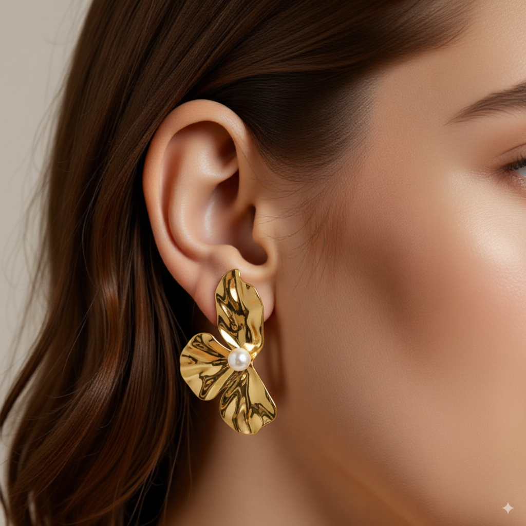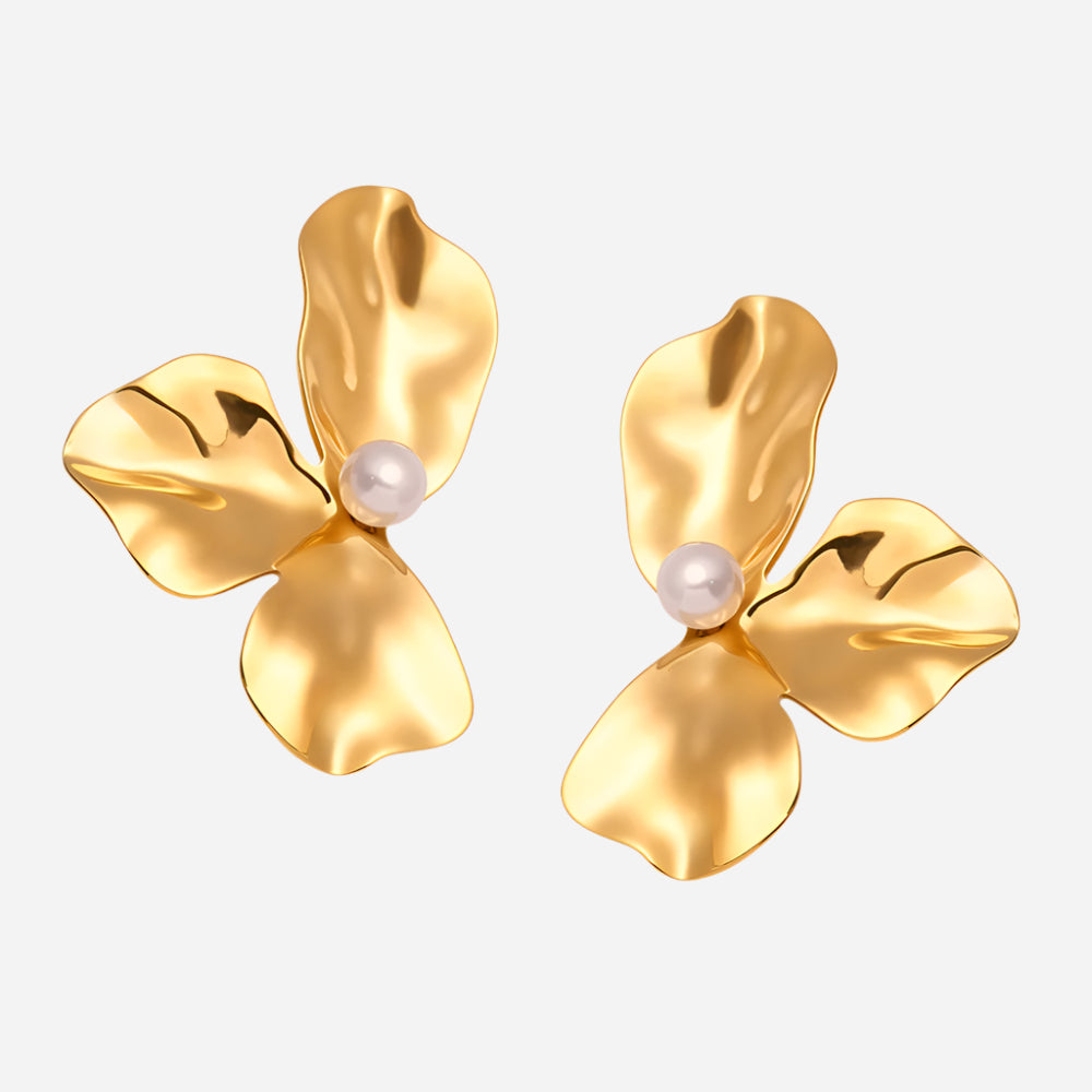 Introducing our Shell Pearl Folded Petals Stainless Steel Stud Earrings- the perfect waterproof & tarnish-free earrings that will add pop of colors to any outfit.