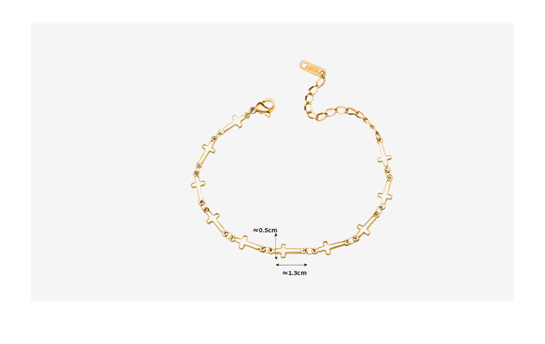 Introducing our Stainless Steel Cross Design Bracelet Gold Plated - the perfect waterproof & tarnish-free summer necklace that will add a pop of color to any outfit.