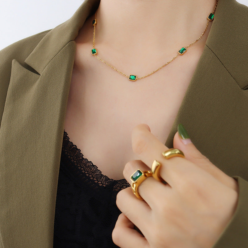 Stainless Steel Handmade Zircon Inlaid Necklaces