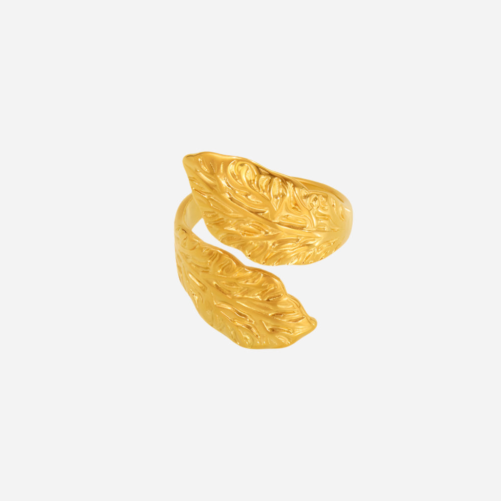 Stainless Steel Leaf Texture Open Ring Women