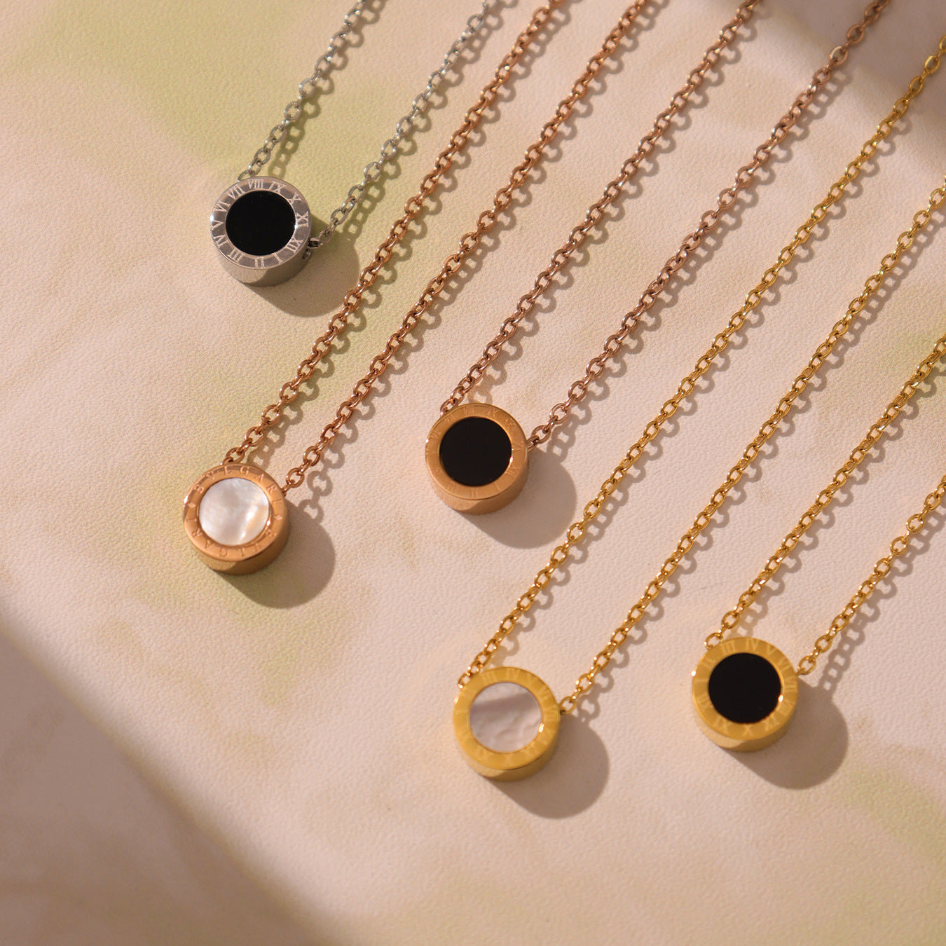White Sea Shell Black Acrylic Roman Numeral Stainless Steel Necklace