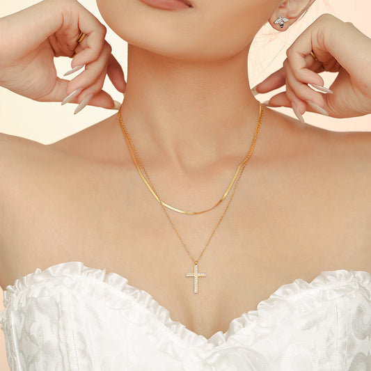 Stacked Cross Pendant Necklace – Zircon Shine in Stainless Steel