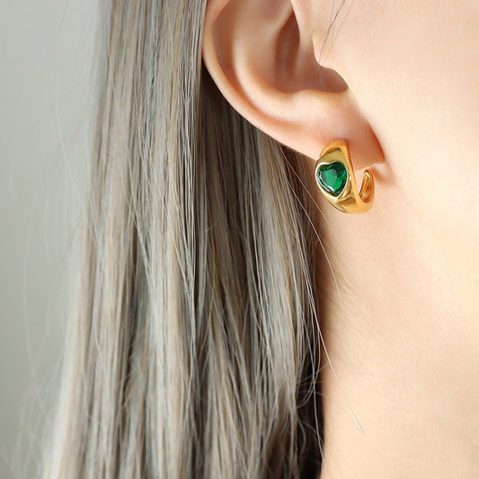 Green White Heart Stud Stainless Steel Earrings