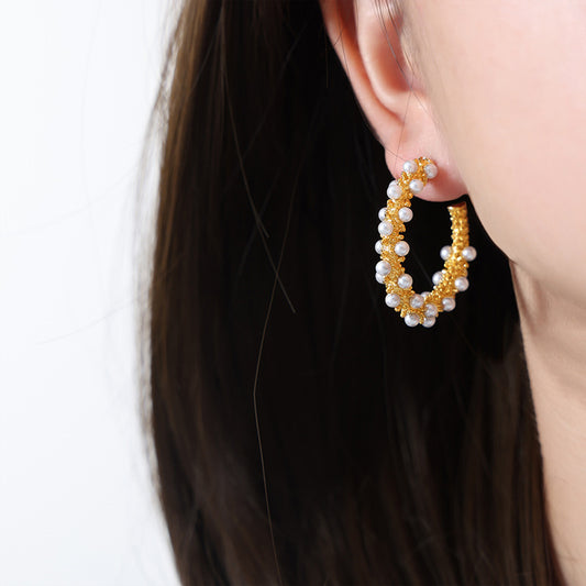 High Shine Pearl Earrings Stainless Steel