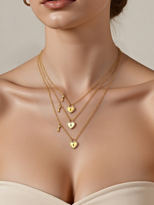 Heart Lock Key Charm Necklaces
