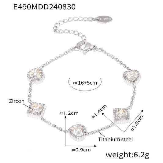 Heart Square Zirconia Bracelet Stainless Steel