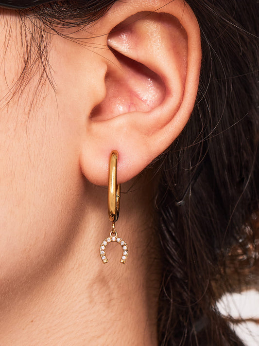 Fashion Gold Horseshoe Buckle Zircon Earrings