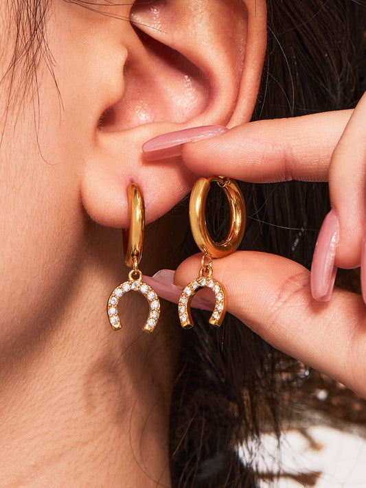 Classic Gold Horseshoe Buckle Zircon U Shaped Earrings