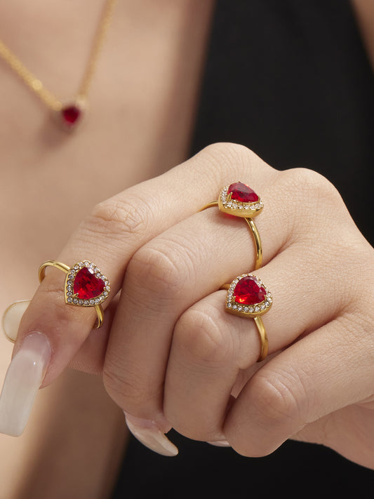Faceted Glass Stone Hollow Heart Clavicle Chain Stainless Steel