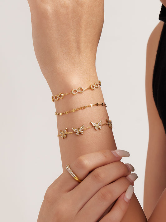 Full Zirconium Multi-butterfly Thin Circle Bracelet Stainless Steel