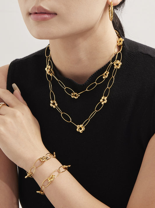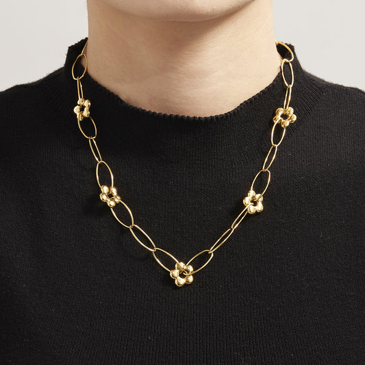 Stainless Steel Gold Flower Design Handmade Chain Necklace
