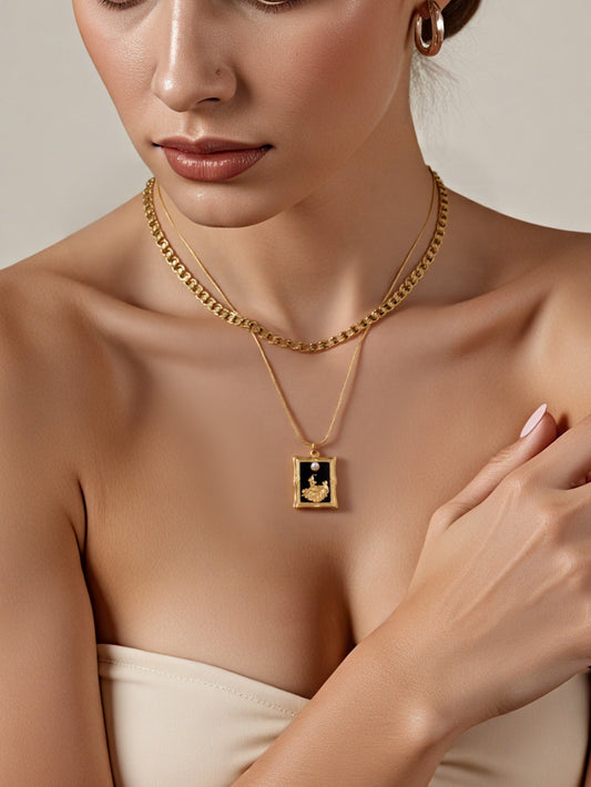 Drip Oil Square Double layered Charm Necklaces