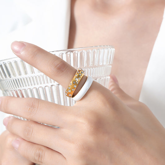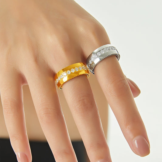 Elegant Woven Stainless Steel Ring with Zircon | Adjustable & Waterproof Design