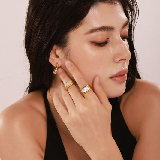 Mother of Pearl Ring – White Seashell Gold Plated Stainless Steel