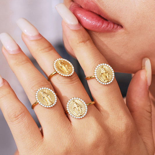 Texture Lace Inlaid Adjustable Ring | Waterproof Stainless Steel Open Band