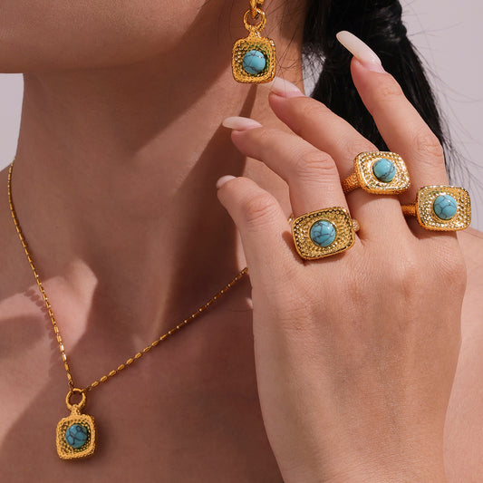 Blue Turquoise Square Open Ring