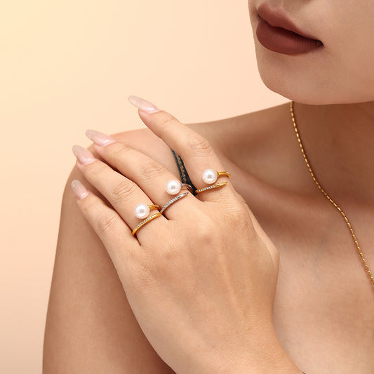 Stainless Steel Pearl Ring with Zircon – Elegant Everyday Jewelry