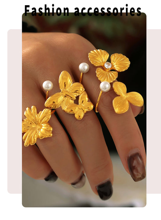 18k Gold Pearl Flower Ring – Stainless Steel Jewelry for Women