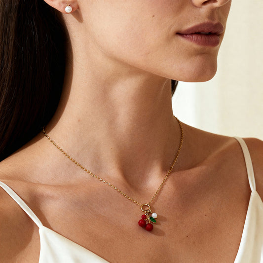 Cherry Necklace Gold | Waterproof Stainless Steel Charm Necklace