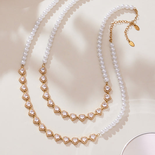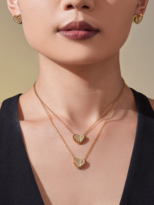 Heart CZ Tennis Necklace | 18K Gold Stainless Steel Jewelry