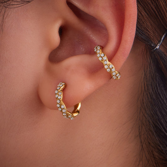Gold Ear Cuff | 18K Gold Stainless Steel Opal Zircon Earrings Clip