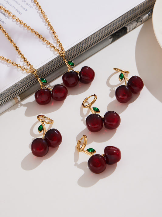 Cherry Allure Stainless Steel Resin Zircon Necklace