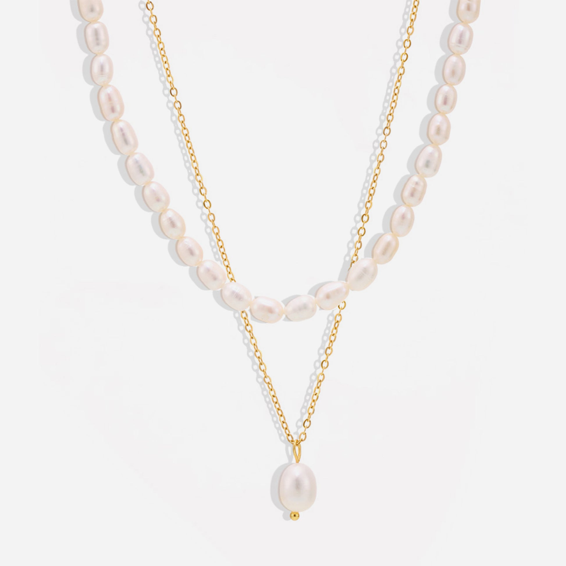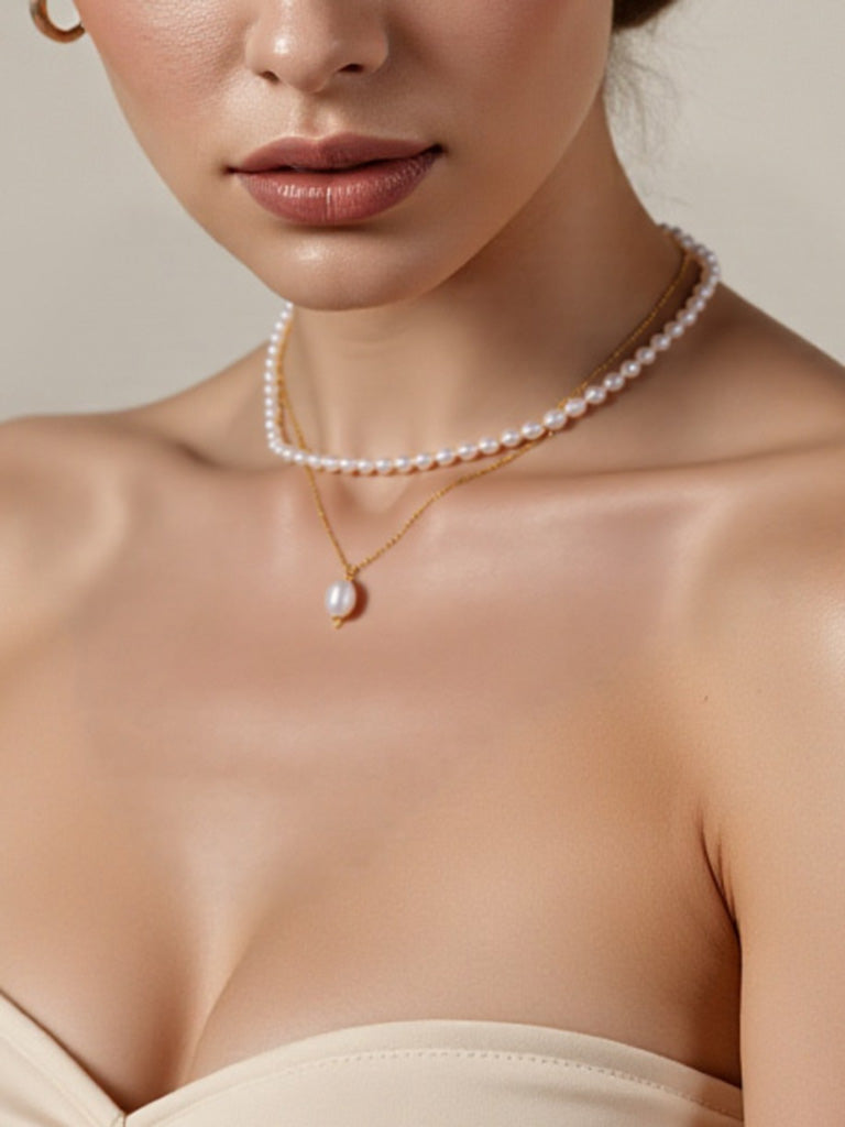 Celebrate elegance and motherhood with our Natural Freshwater Pearl Layered Necklace – a French-inspired design crafted for women who love understated luxury. Featuring naturally grown freshwater pearls arranged in a gentle layered style, this necklace is made with 18K gold-plated stainless steel to ensure it stays tarnish-free, waterproof, and safe for sensitive skin.
