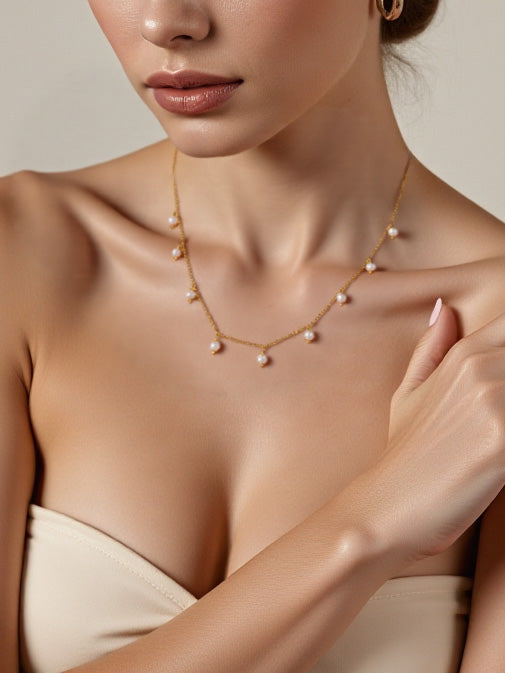 Wear it solo for a clean, graceful neckline or layer with longer chains for a chic, modern stack. Matches beautifully with our Pearl Drop Earrings or Minimalist Pearl Bracelets for a coordinated set.