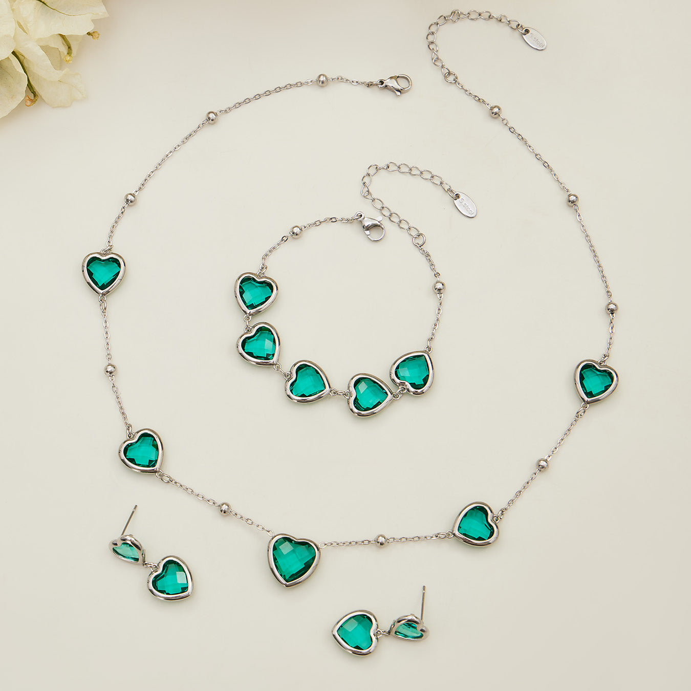 Sea Glass 5 Hearts Stainless Steel Bracelet