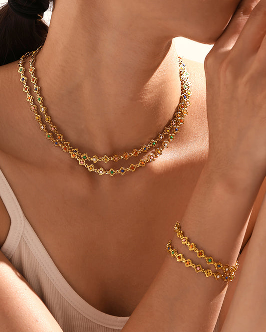 Floral Mini Tennis Bracelet | Dainty Gold-Plated Stainless Steel