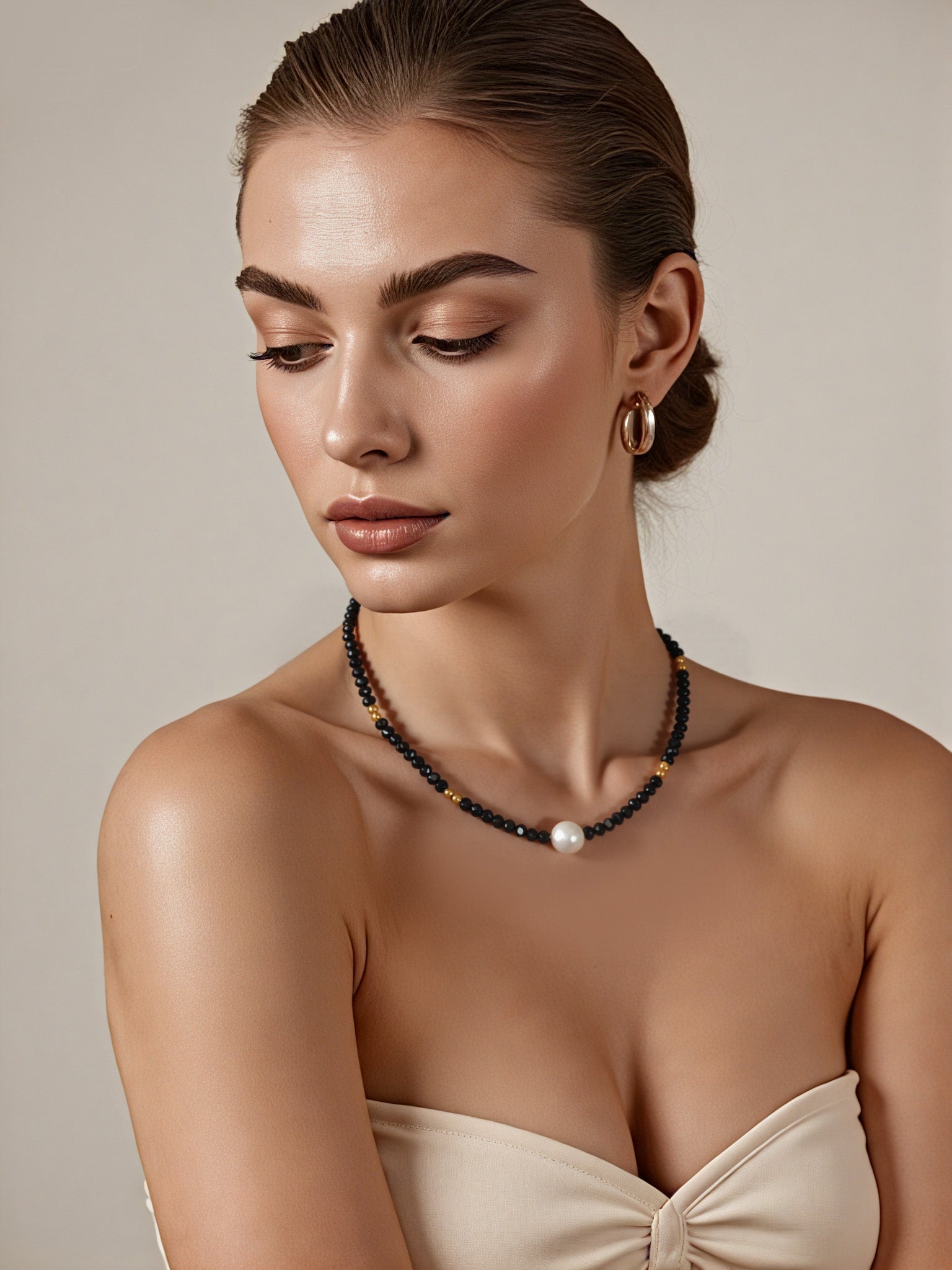 Striking contrast, effortless allure — meet our Freshwater Pearl Drop on Black Beaded Chain, where bold minimalism meets timeless elegance.